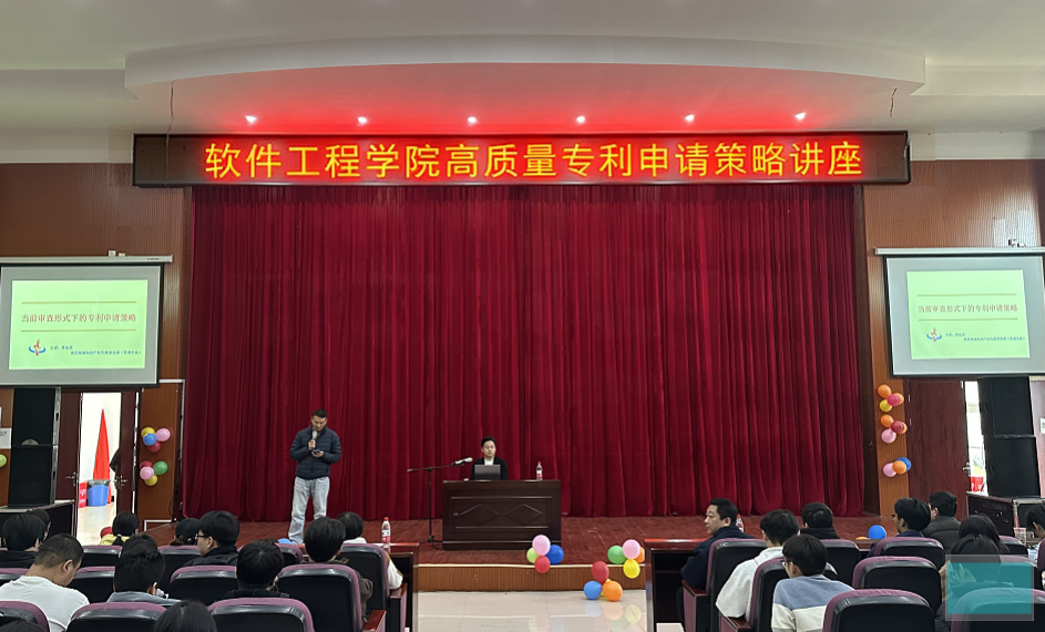 本网讯(文、图/常新雅) 11月27日下午,软件工程学院在一教报告厅举办“高质量专利申请策略”专题讲座。学院副院长刘秋明出席,学院教师代表、全体研究生、本科生代表参加。活动由国家专利代理师曹远龙主讲,刘秋明主持。