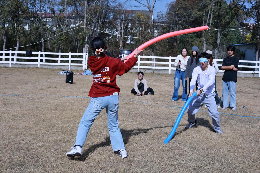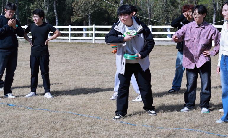 本次活动主要分为“围炉座谈”“趣味运动”两个环节。全体研究生通过“团体追逃”“盲人剑客”“积分飞盘”等趣味运动,不仅学习了相互配合、集体协作,真切感受到团队间的信任与责任,还激发了运动兴趣、增强了体能。在“围炉座谈”活动中,所有学生齐聚一堂就学业、生活问题以及未来发展目标、规划展开热烈讨论。在“趣味活动”中,各团体项目从反应协作、信任联结、策略体能等维度为研究生提供了丰富的团队互动体验。