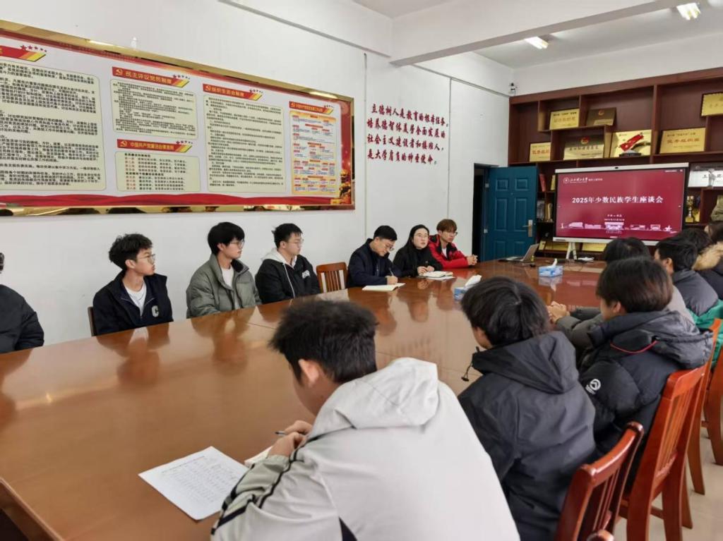 本网讯(文/赵诗扬 图/梁祖一) 为铸牢中华民族共同体意识,进一步搭建少数民族学生的交流桥梁,增进各族学生的相互理解与情谊,营造包容互助的校园氛围,12月16日下午,软件工程学院在1302会议室举办2025年少数民族学生座谈会。学院党委副书记(主持工作)兰新华、学工办主任兼团委书记方雅婷出席,学院少数民族学生代表参加。