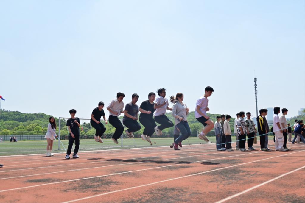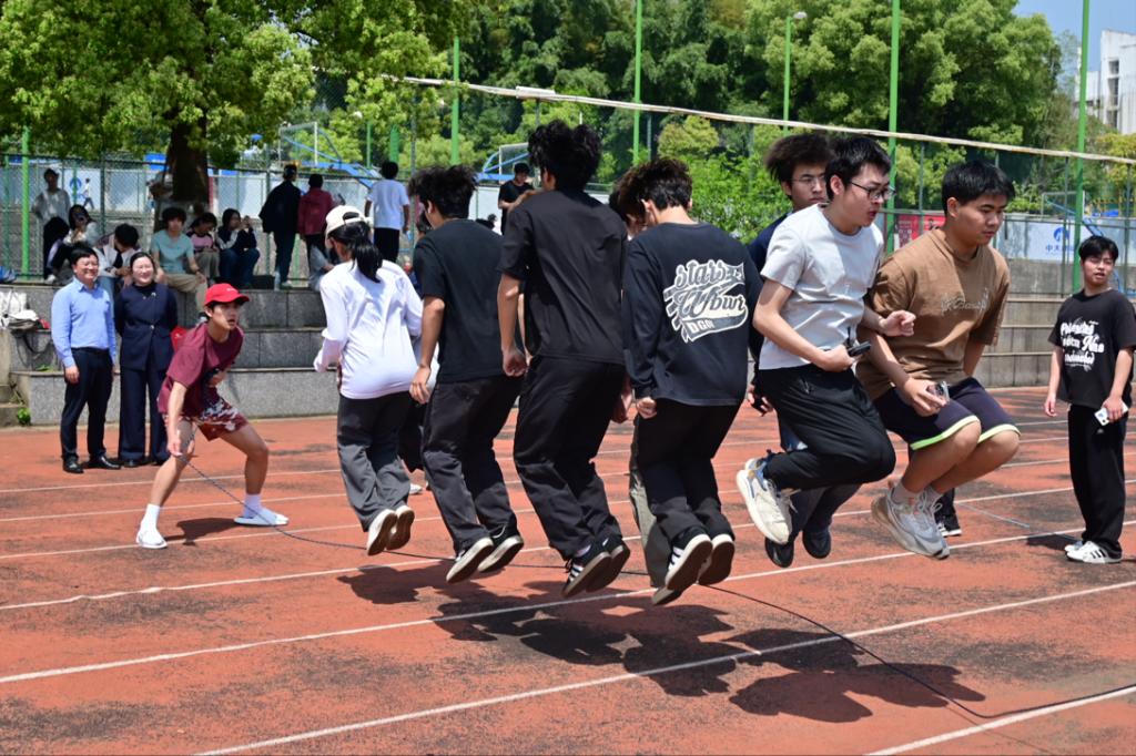 长绳在空中翻飞,身影在绳间跃动,矿脉齐跃项目以集体跳大绳的形式,将团队协作推向高潮。摇绳同学力度均匀、节奏稳定,跳绳同学步伐轻盈、默契配合,大家依次起跳、连贯穿梭,一气呵成。绳影如梭间,不仅展现了同学们高度的默契与协作能力,更寓意着矿脉绵延、接续奋进的精神力量,每一次整齐的跳跃,都是青春活力与团队凝聚力的最好展现。