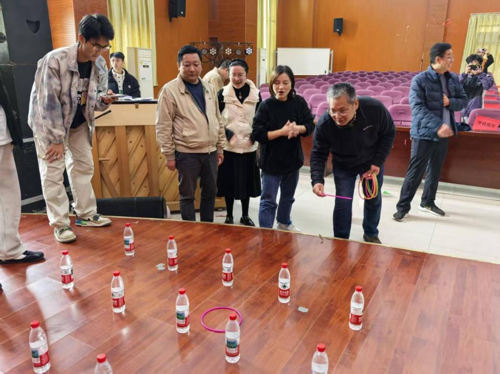 本次趣味运动会精心设立了欢乐套圈、趣味投壶、双龙戏珠、保龄球、集体跳绳等五大趣味项目,兼顾了趣味性与互动性。比赛中,教师们全身心投入到趣味比拼中,场上笑声、喝彩声此起彼伏,展现出教育工作者独有的青春活力与乐观心态。活动现场,黄志繁与教职工们亲切交流,一同感受趣味运动的欢乐氛围,为参赛教职工加油鼓劲,充分彰显了学校对教职工身心健康的关怀与重视。