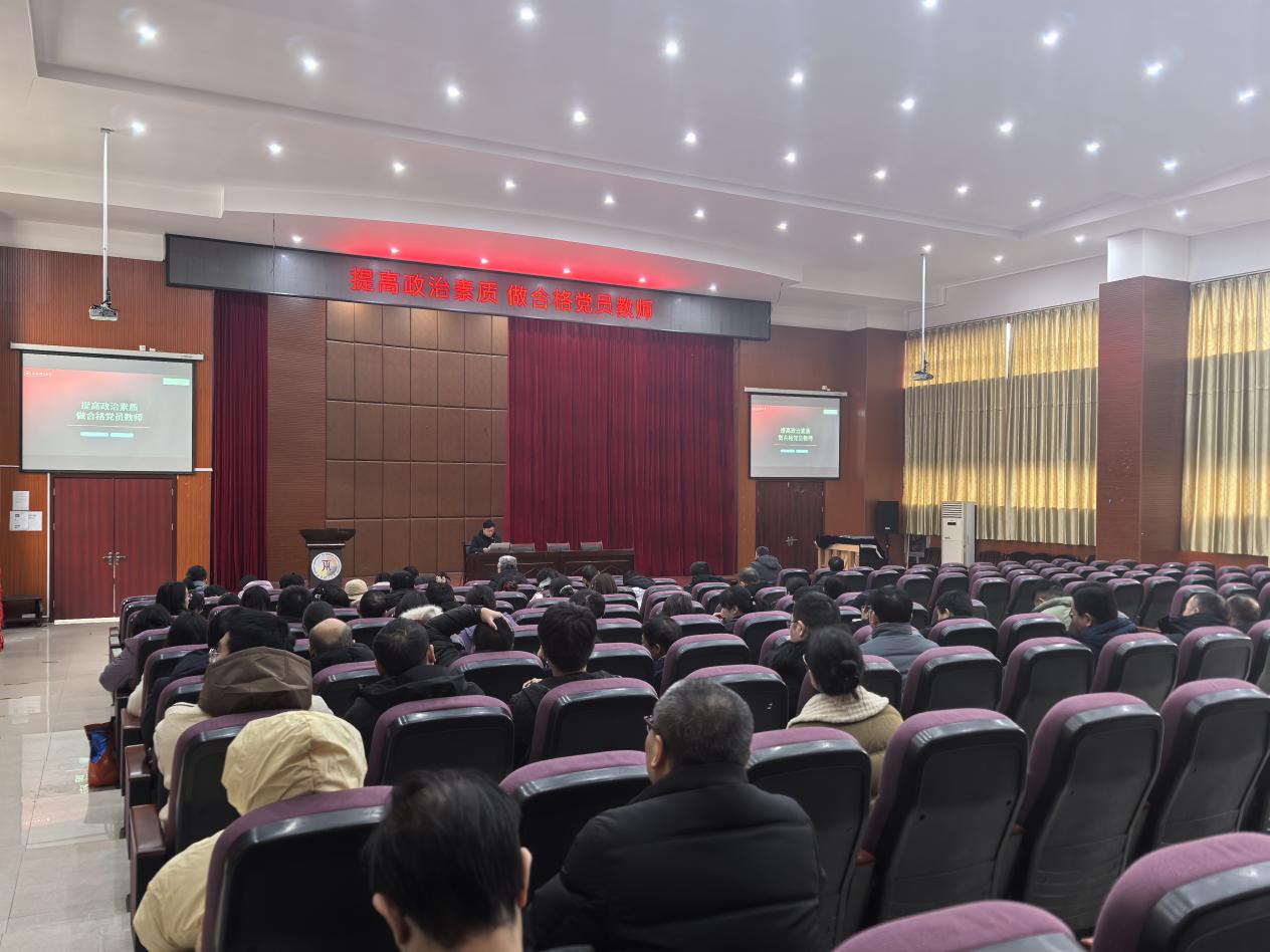 本网讯(文/吴奇轩 图/新闻采编部) 1月27日下午,软件工程学院在一教报告厅召开全院教职工大会,就《提高政治素质,做合格党员教师》进行专题学习。学院党委副书记(主持工作)兰新华主讲,全体教职工参加。