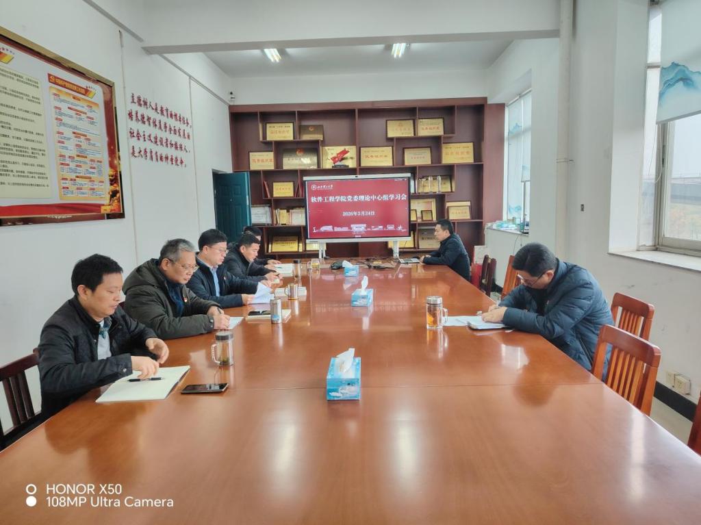 本网讯(文/吴奇轩 图/王健) 3月24日上午,软件工程学院在1302会议室召开党委理论学习中心组学习会议,会议主题为“树立和践行正确政绩观观,推动‘十五五’开好局起好步”。学院党委副书记(主持工作)兰新华主持会议,党委委员参加会议,副院长刘述民列席会议。
