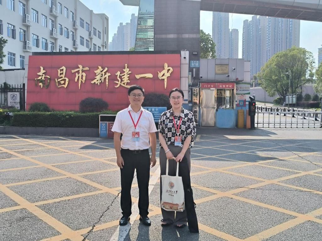 Net News (Text/He Liangchen;Photo/Fang Yating) To build a communication bridge between universities and high schools and attract outstanding students to apply for our university, on July 3, Lan Xinhua, Deputy Secretary of the Party Committee of the School of Software Engineering (acting as the principal responsible person), and Fang Yating, Director of the Student Affairs Office and Secretary of the Youth League Committee, visited Xinjian No. 1 High School to conduct a distinctive enrollment promotion activity, comprehensively demonstrating the university's style and strengths.